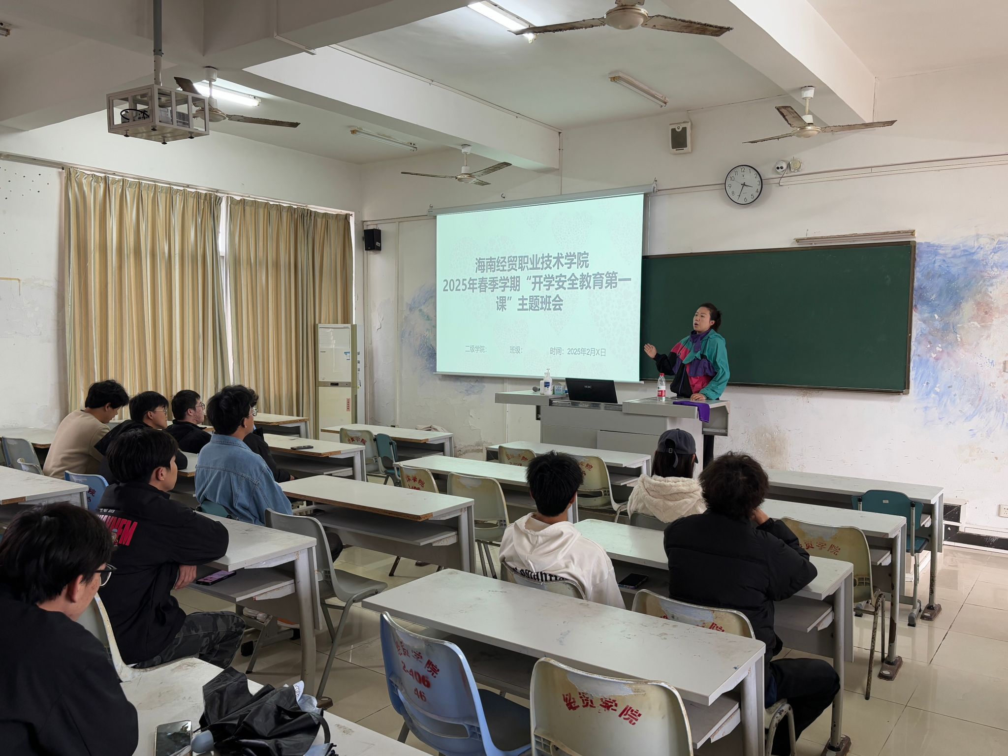 班会上,各班主任针对交通安全、消防安全、财产安全、预防传染病、人身安全、饮食卫生等方面进行安全教育,用生动具体的事例警示、告诫、教育员工,让每一位员工都留下深刻的印象。