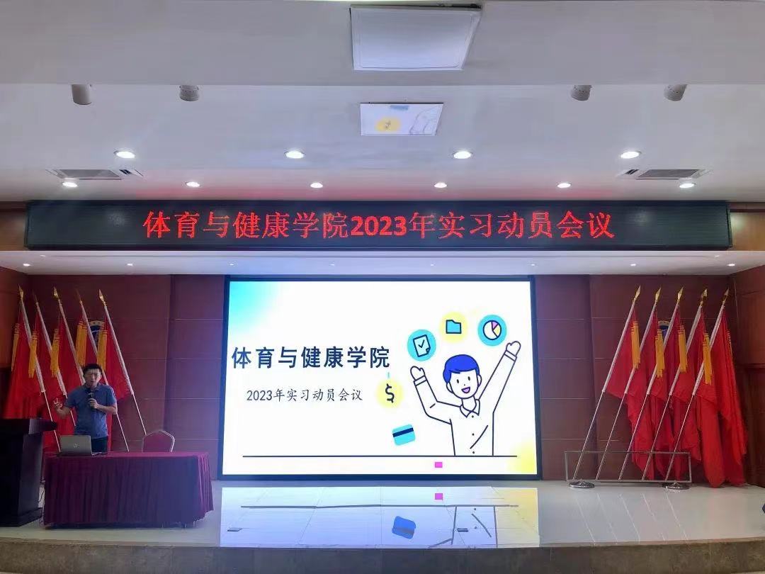 级体育运营与管理专业实习动员大会,公司黄闻寰副经理、教务办郭柏成副主任、教师代表以及全体