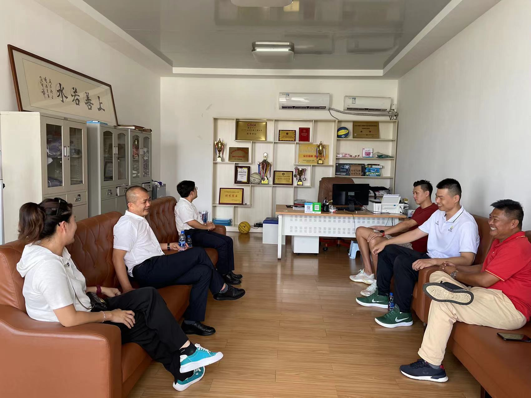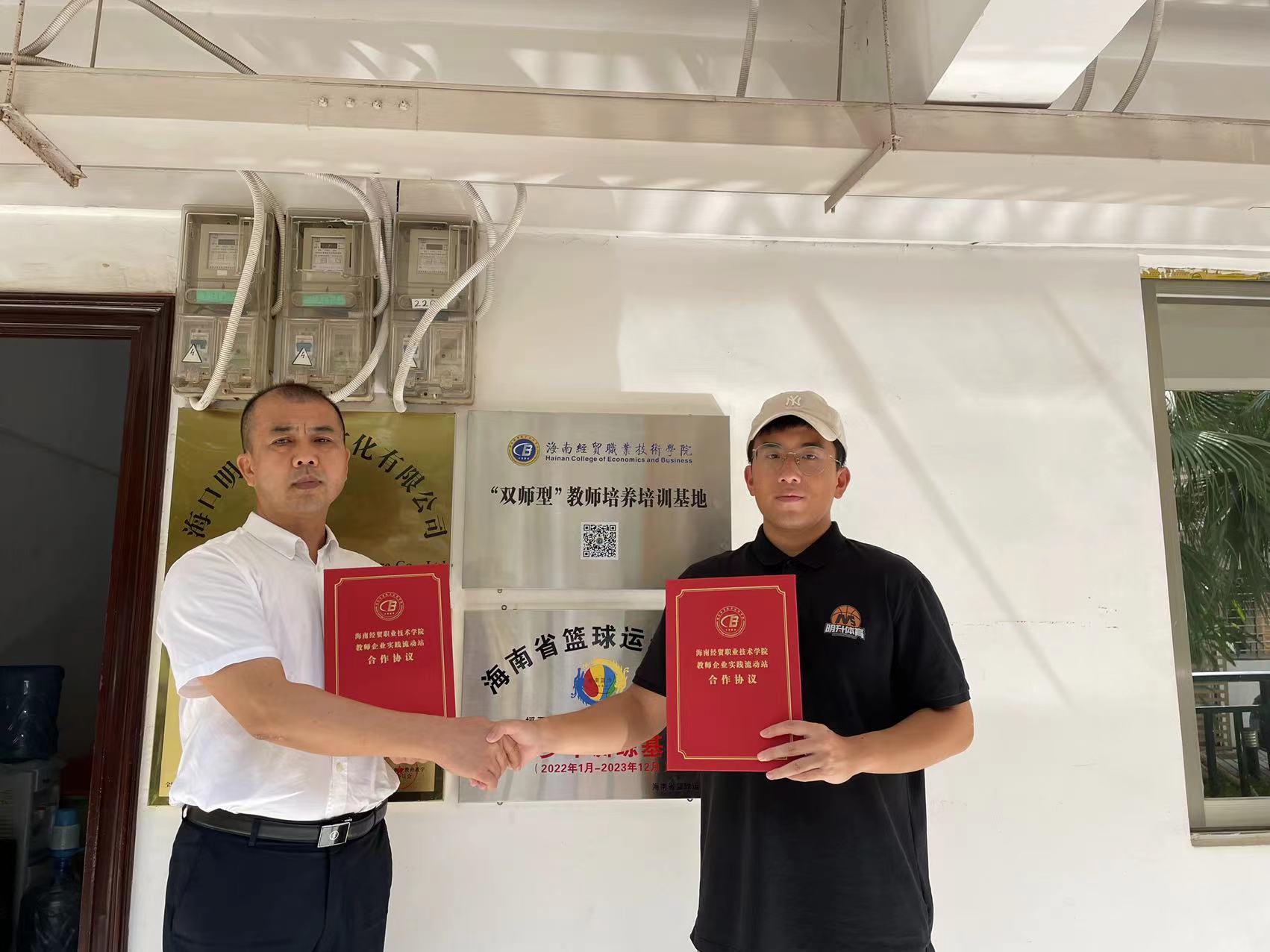 为贯彻落实《beats365官网入口教师企业实践基地建设三年行动计划(2021-2023)》和“访企拓岗”专项行动,进一步深化校企合作,落细落实教师企业实践基地建设和访企拓岗促就业工作,5月25日下午,beats365官网入口经理胡友波带队先后赴海口明升体育文化有限公司和霍楠篮球训练基地走访洽谈、签署“双师型”教师培养培训基地建设协议并挂牌。