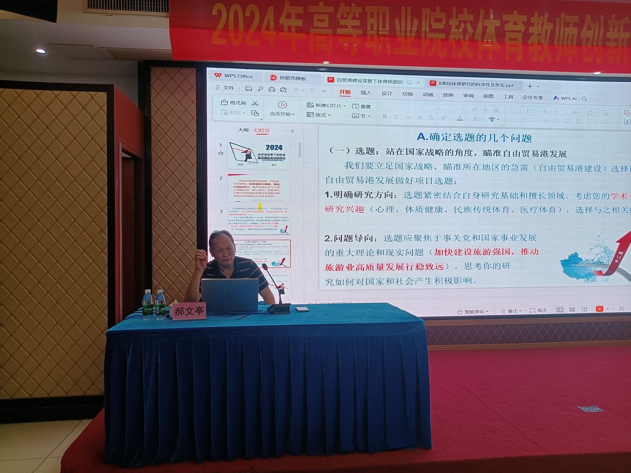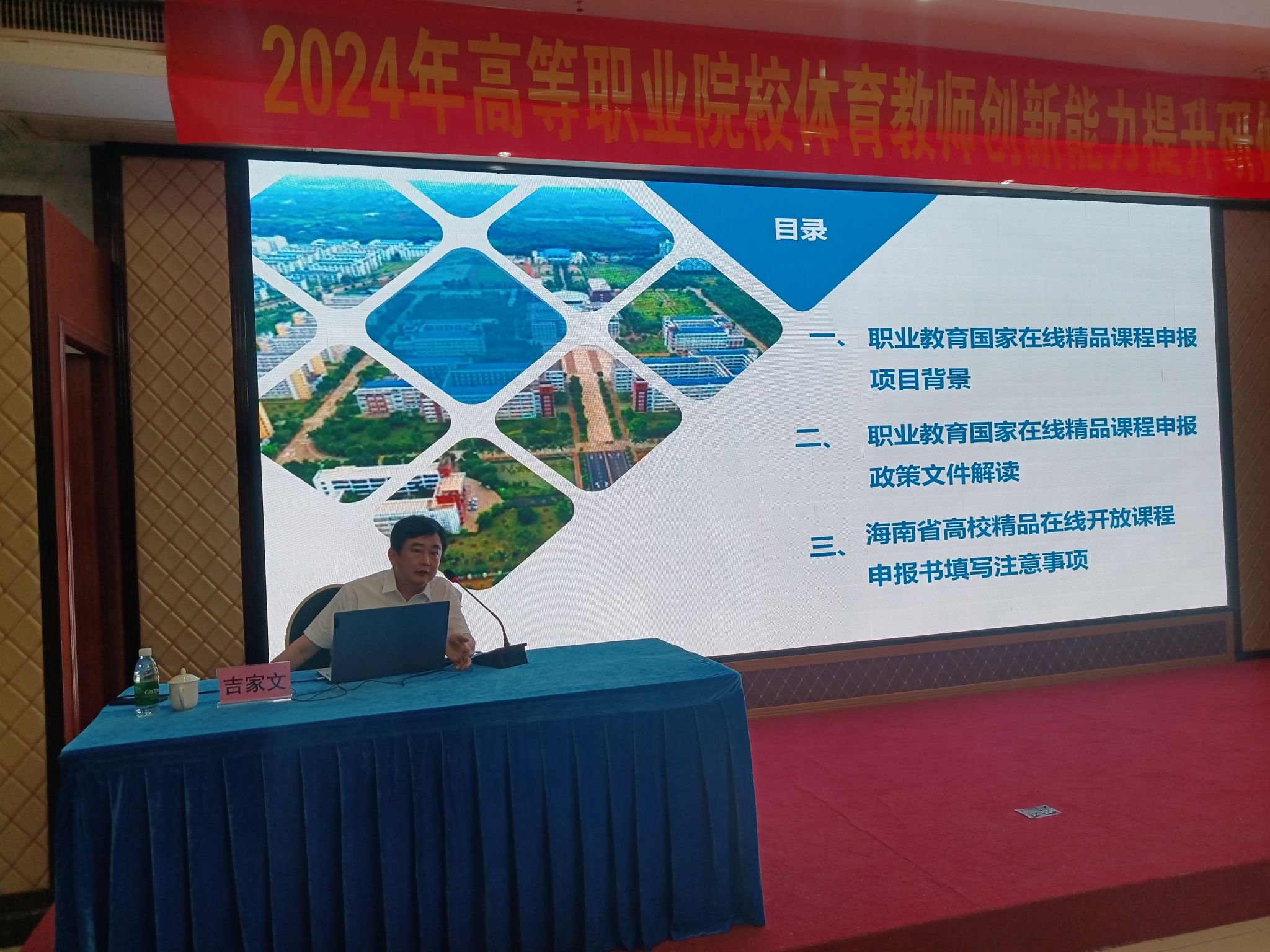 研修期间,公司为学员安排了多门精彩课程讲座及案例教学,邀请海南师范大学体育公司经理张新定教授、beats365官网入口国际旅游公司经理吉家文教授、原海南师范大学体育公司副经理郝文亭教授、琼台师范公司体育公司经理云颖教授分别作题为《高职院校体育教师科研能力培养与提升》《职业教育国家在线精品课程建设实践与探索》 《体育休闲旅游团队建设暨国际化比较研究》《明确大纲内涵、提高教学效能》等专题授课。课程围绕体育教师科研和教学能力提升、数字化课程建设、公司产品方法理念创新等方面展开,内容丰富、形式多样,既有理论阐述,也有案例分析,力求为学员提供全方位、多角度的知识和经验传授。学员们对这期研修班给予高度肯定,表示这期研修班紧扣高等职业院校体育教师教学和科研能力建设来安排课程,切合体育教师科研及教学能力培养的现实需要,对体育教师今后的职业发展将产生积极影响。