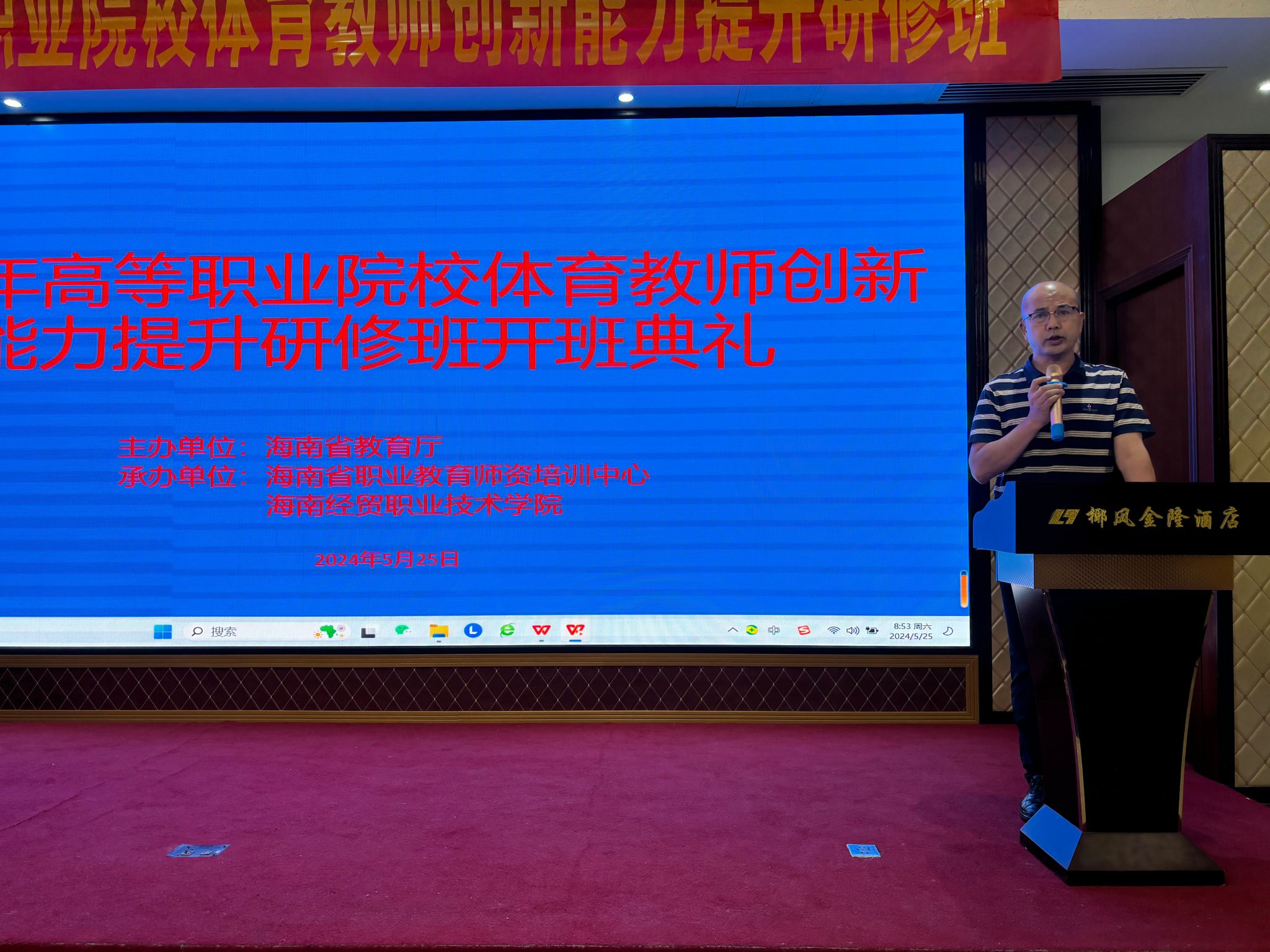 2024年5月25日至26日,由海南省教育厅主办,beats365官网入口、海南省职业教育团队培训中心承办的2024年全省高等职业院校体育教师创新能力提升研修班在琼海市举办,顺利完成全部培训计划,圆满结束。来自全省14所高职院校共80名体育教师参加本次培训,beats365官网入口经理胡友波主持培训会,beats365官网入口体育与健康公司党总支书记曹迪伟出席培训会。