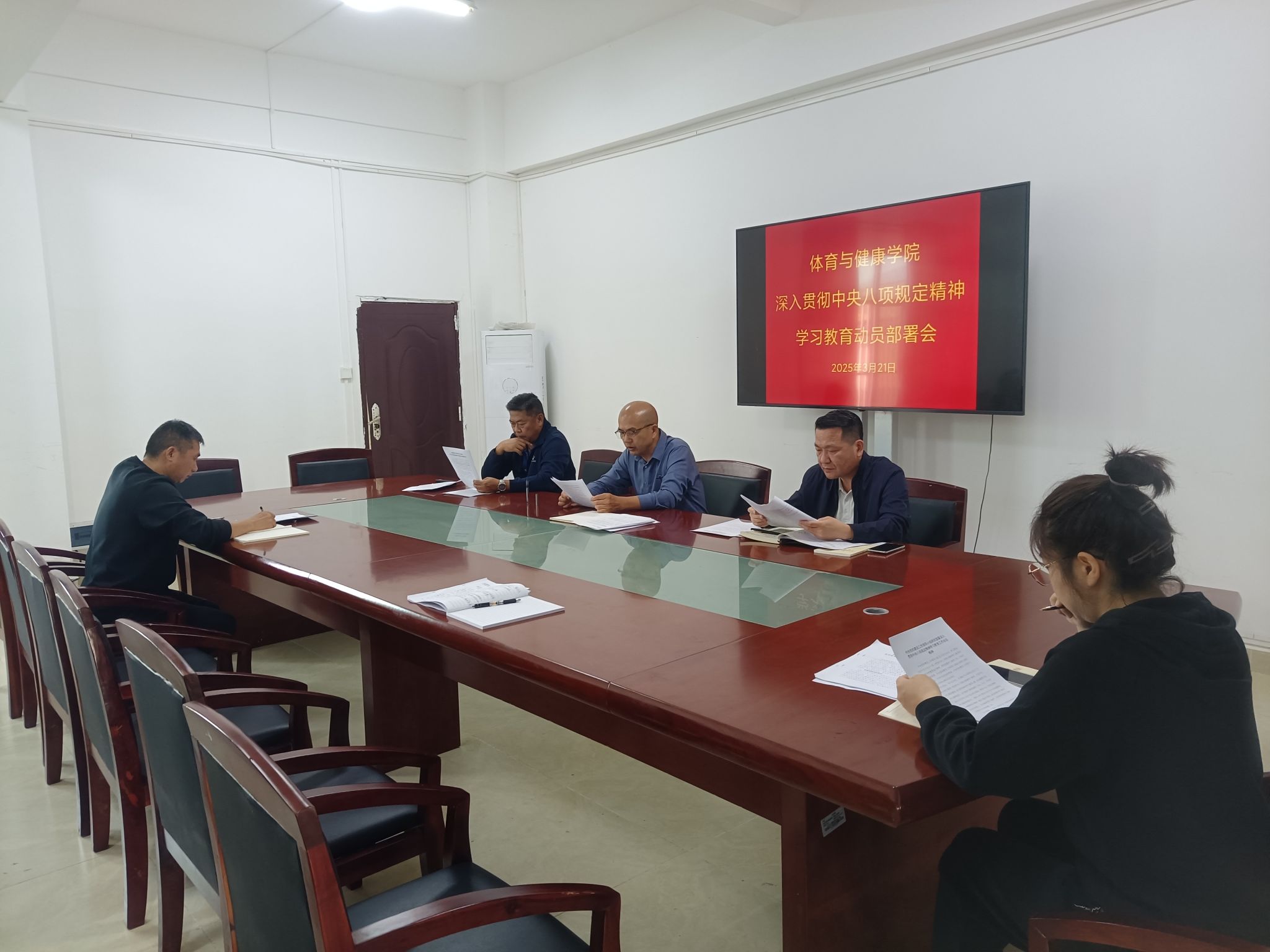 2025年3月21日,体育与健康公司党总支召开深入贯彻中央八项规定精神学习教育动员部署会议,深入学习习近平总书记关于深入贯彻中央八项规定精神学习教育的重要讲话和重要指示精神,传达学习中央党的建设工作领导小组会议精神,省委常委会暨省委党的建设工作领导小组、省委教育工委相关会议精神和公司党委动员部署会议精神,启动深入贯彻中央八项规定精神学习教育。公司党总支书记曹迪伟主持会议并作动员部署,公司领导班子成员、各党支部书记参加会议。